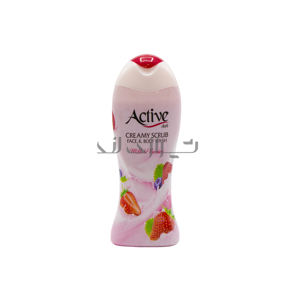 اسکراب صورت و بدن اکتیو با عصاره توت فرنگی و بری دارای دانه های طبیعی با خاصیت پاکسازی و لایه برداری ملایم است که پس از استفاده باعث لطافت و شادابی پوست می شود.