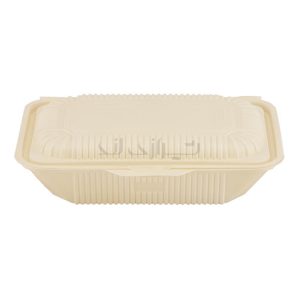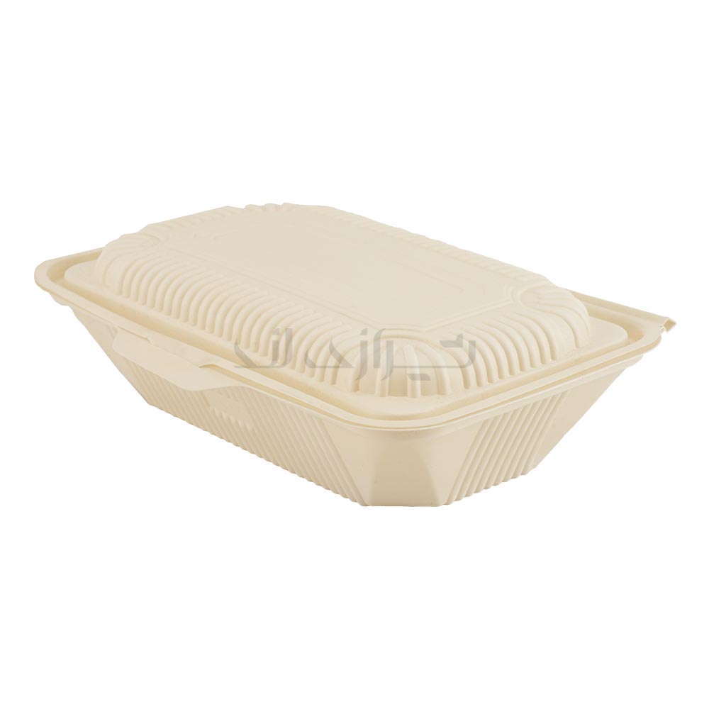 تک پرسی گیاهی درب دار آملون از مواد طبیعی مثل نشاسته ذرت تولید شده است. به علت مواد اولیه طبیعی که دارد، بازیافتی می باشد و جایگزین مناسب تری نسبت به پلاستیک هستند. این ظروف در صورت تماس با غذای دمای گرم یا سرد هیچ واکنش منفی ندارد. معمولا در کافه، فروشگاه، رستوران…. برای بسته بندی محصولات کاربرد دارند.