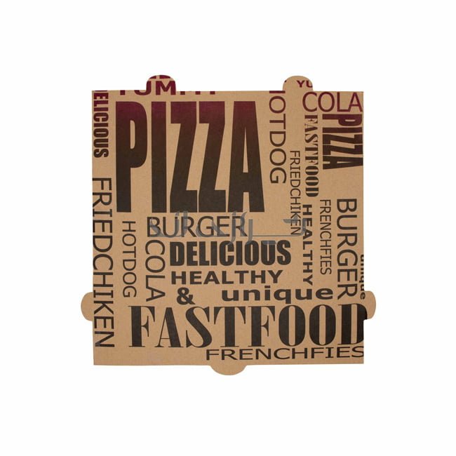 جعبه پیتزا کرافت چاپی 32 تولید شده از سه لایه کاغذ کرافت و عایق حرارتی مناسبی برای گرم نگه داشتن پیتزا می باشد. این جعبه ها دارای پروانه بهداشت و مناسب سفارش های بیرون بر هستند.