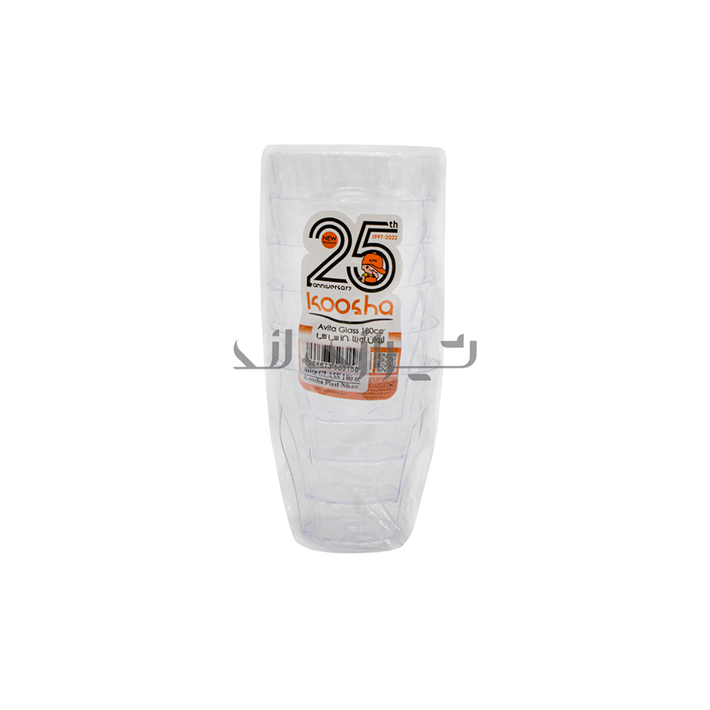 لیوان آویتا 180 سی سی کوشا شفاف از مواد اولیه پلی استایرن تولید شده که شفاف و با کیفیت می باشد. مقاومت بالایی در برابر هر دمایی دارد و واکنشی نشان نمی دهد.