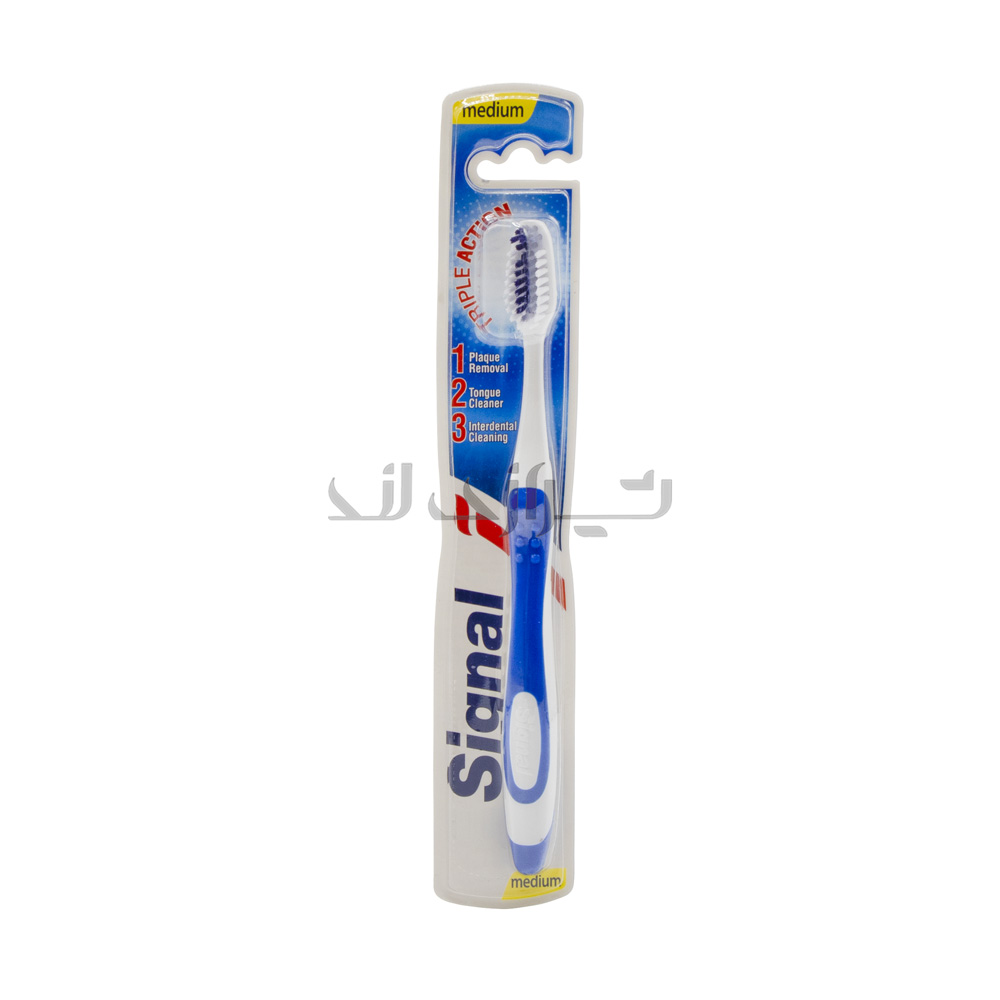 مسواک سیگنال عملکرد سه گانه یا همان triple action دارای برس خاصی می باشد که حالت موجی شکلی دارد و پلاک های ایجاد شده روی دندان ها را به راحتی پاک می نماید و قادر است بین دندان ها را نیز پاکسازی کند. از نظر ارگونومی نیز طراحی آن کاملا مناسب استفاده روزمره بوده و زبان شور آن نیز باکتری های روی زبان را به آسانی تمیز می کند.