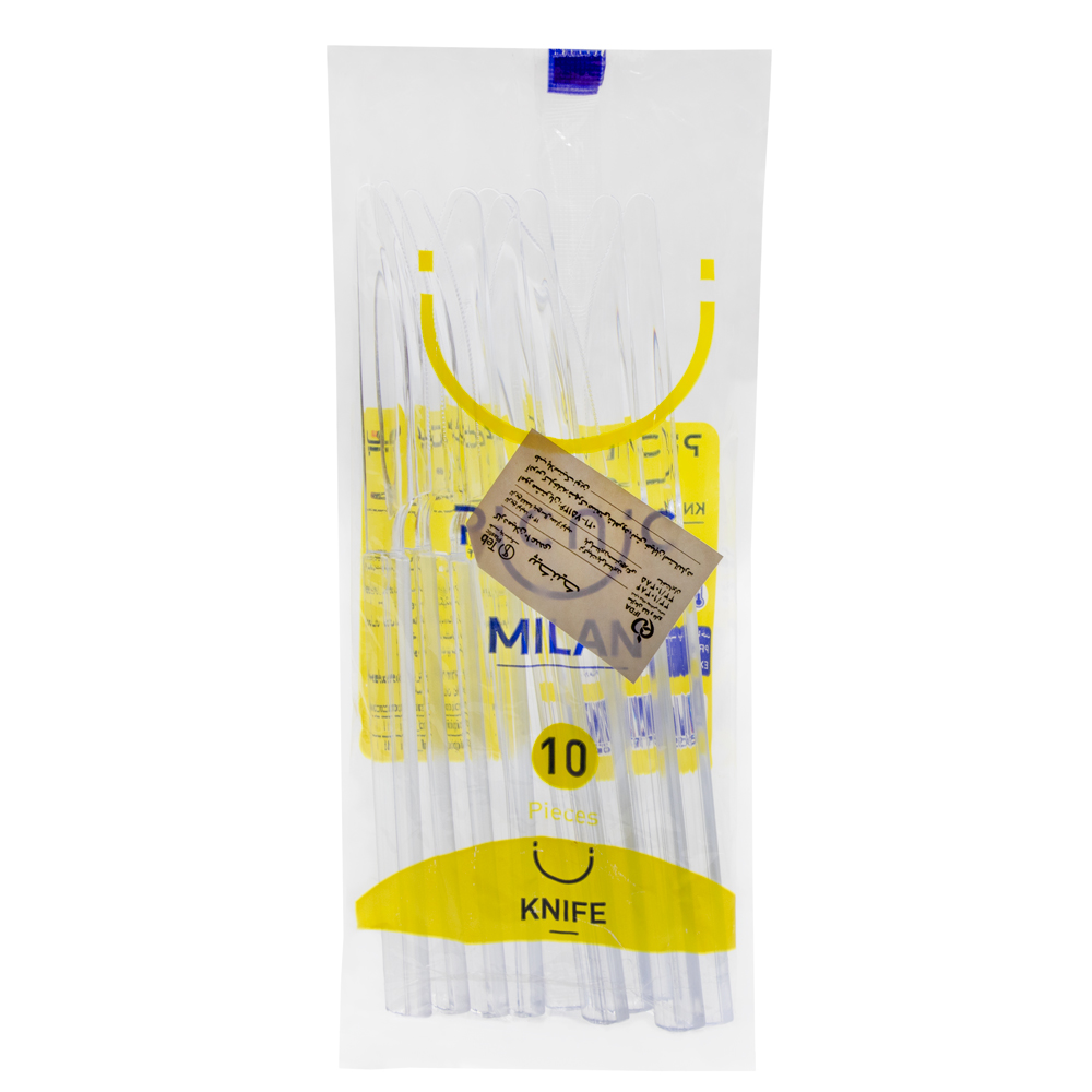 کارد میلان شیشه ای از مواد اولیه پلی استایرن تولید شده است که در صنعت غذا و رستوران پر مصرف می باشد. دارای ضخامت مناسبی است که در برابر فشار مقاوم است.